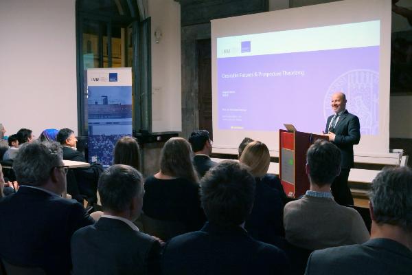 Prof. Dr. Ali Aslan Gümüşay hielt einen Vortrag über "Desirable Futures & Prospective Theorizing" und stellte dabei die Frage, welche Rolle die Wissenschaft zukünftig spielen wird und welche Methoden dabei angewendet werden können, um eine effektive Theorien zu bilden. Er führte zudem aus, wie die Forschung und Ziele von Unternehmen neu konzipiert werden könnten, um gesellschaftliche Wirkung zu fördern.